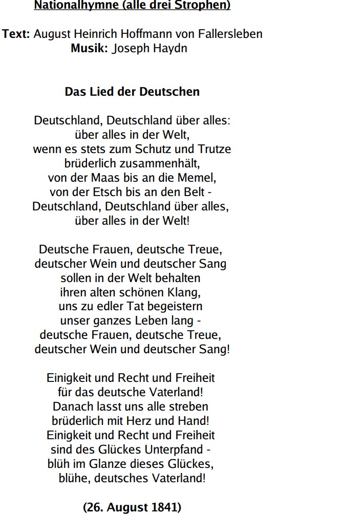 Wenn diese Strophen nicht gesungen werden sollen/dürfen? - dann sollte ein anderes Lied festgelegt - ein Lied, dessen Strophen nicht verschämt versteckt werden.
