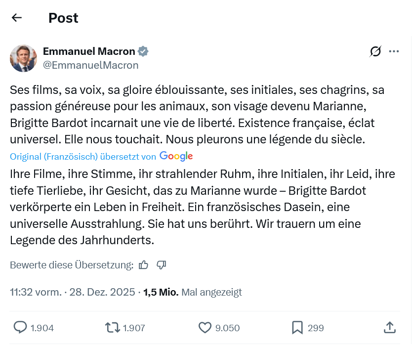 Screenshot 2025-12-29 at 19-19-35 (3) Emmanuel Macron auf X „Ses films sa voix sa gloire éblouissante ses initiales ses chagrins sa passion généreuse pour les animaux son visage devenu Marianne Brigitte Bardot incarnait une v[...].png