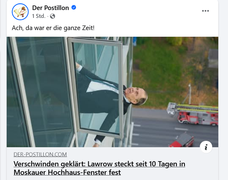 Der russische Außenminister Lawrow wurde für ca. 2 Wochen bis gestern nicht gesehen. Die Spekulationen der internationalen Presse, ob und warum er bei Putin in Ungnade gefallen sein könnte, nehmen zu: